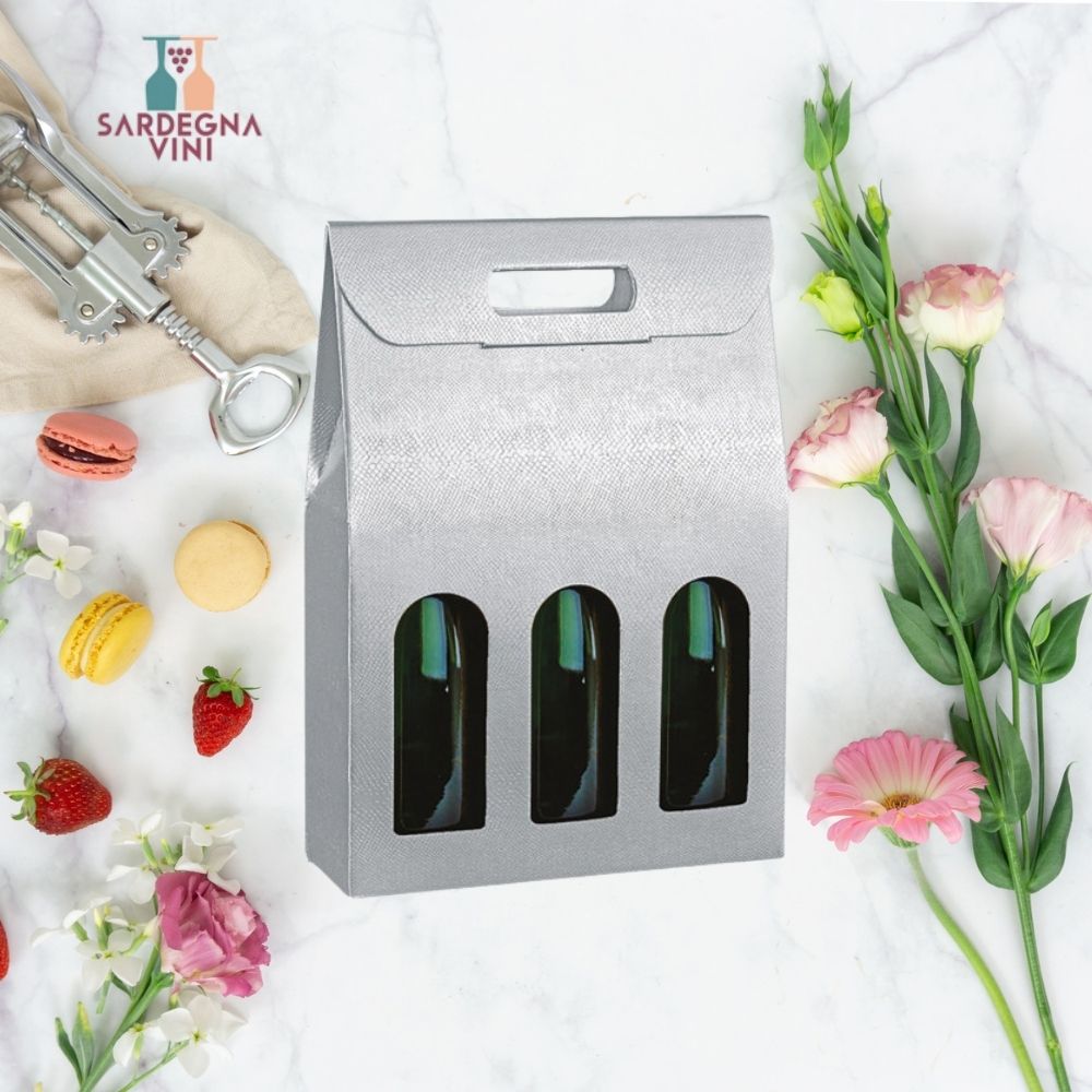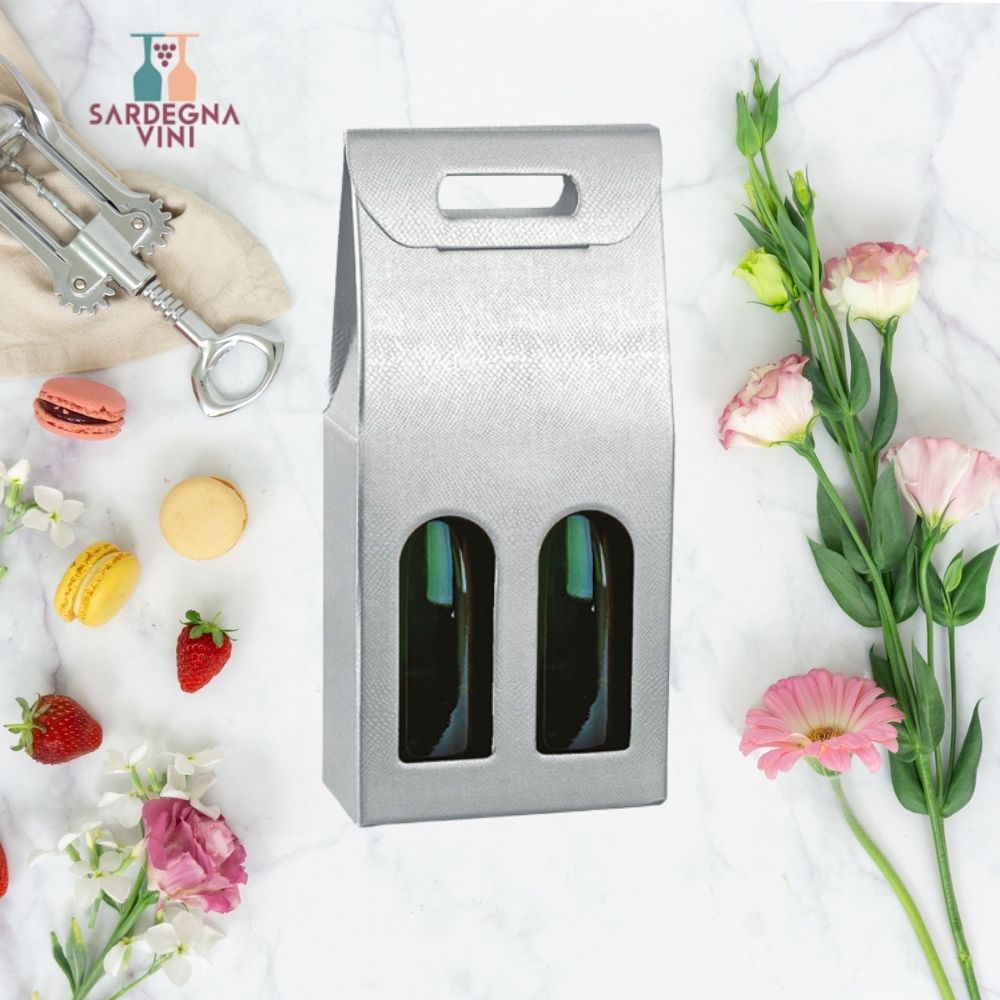 Realizzata in materiale con texture effetto pelle, questa scatola può contenere 2 o 3 bottiglie di vino, trasformando ogni regalo in un'esperienza premium.
