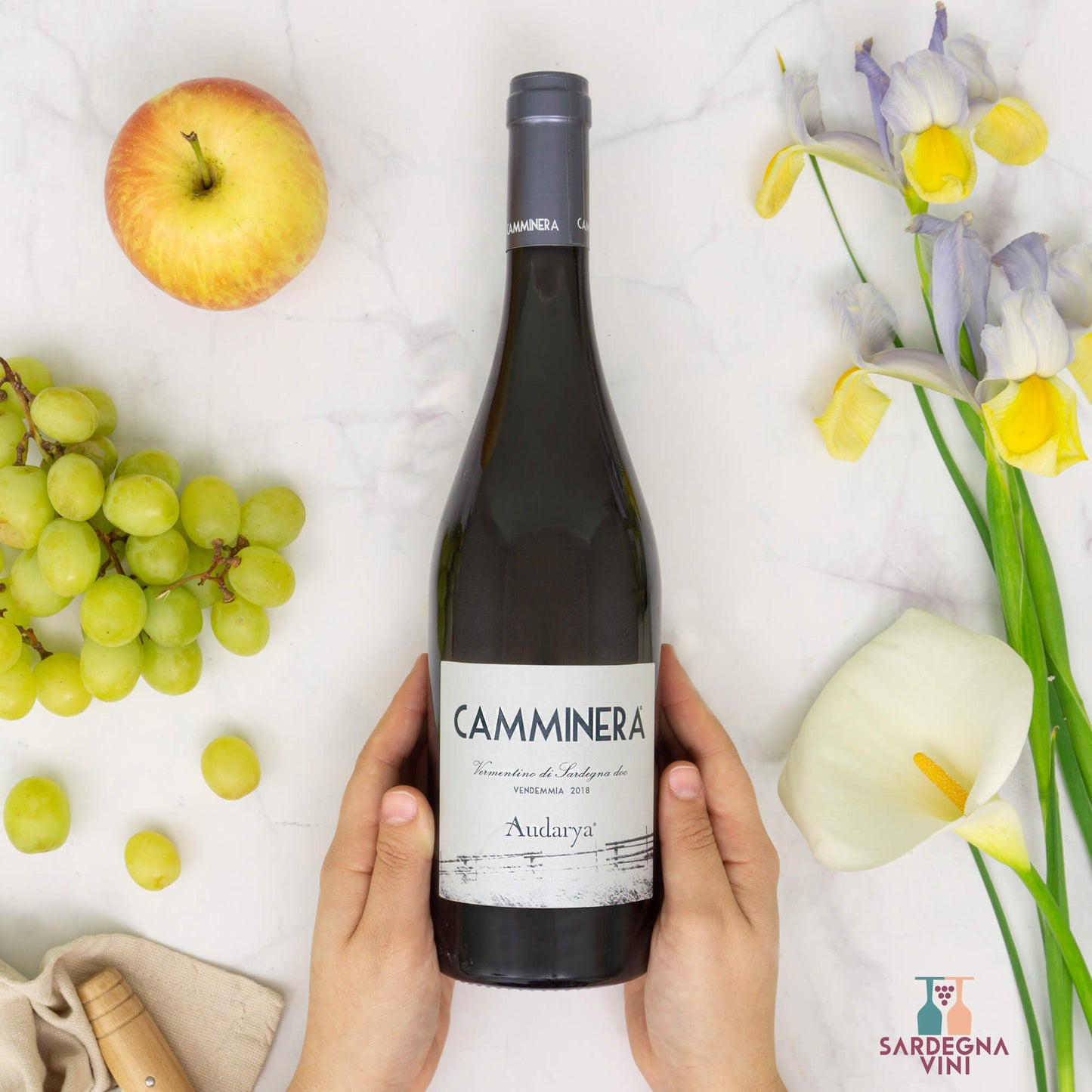 Bessiu Nasco di Cagliari DOC 2023 white wine bottle from Cantina Audarya with a golden hue and elegant label design.