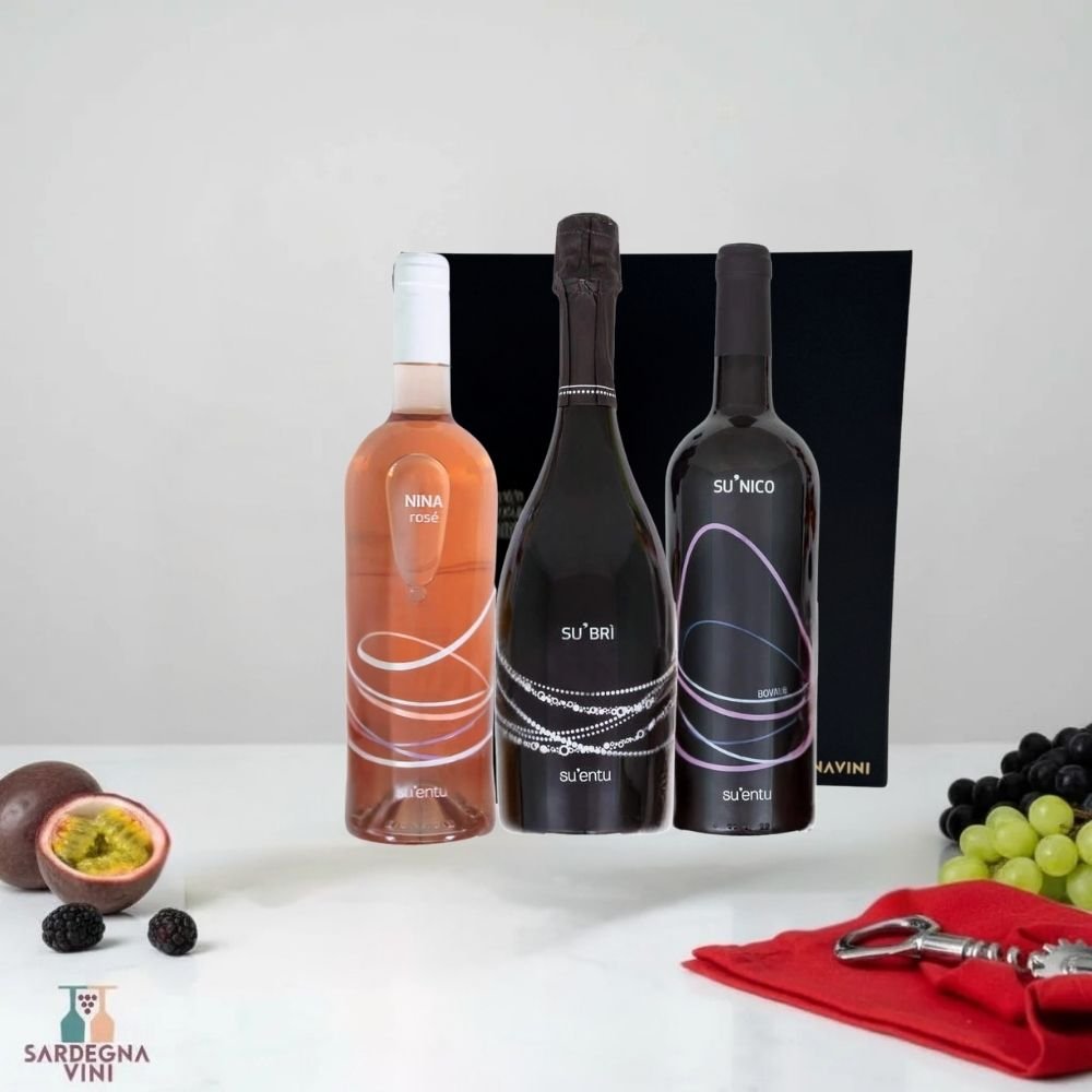 Cassetta 1 bt 'Jù Dolianova' gift box by Sardegnavini featuring elegant packaging and wine bottle display.