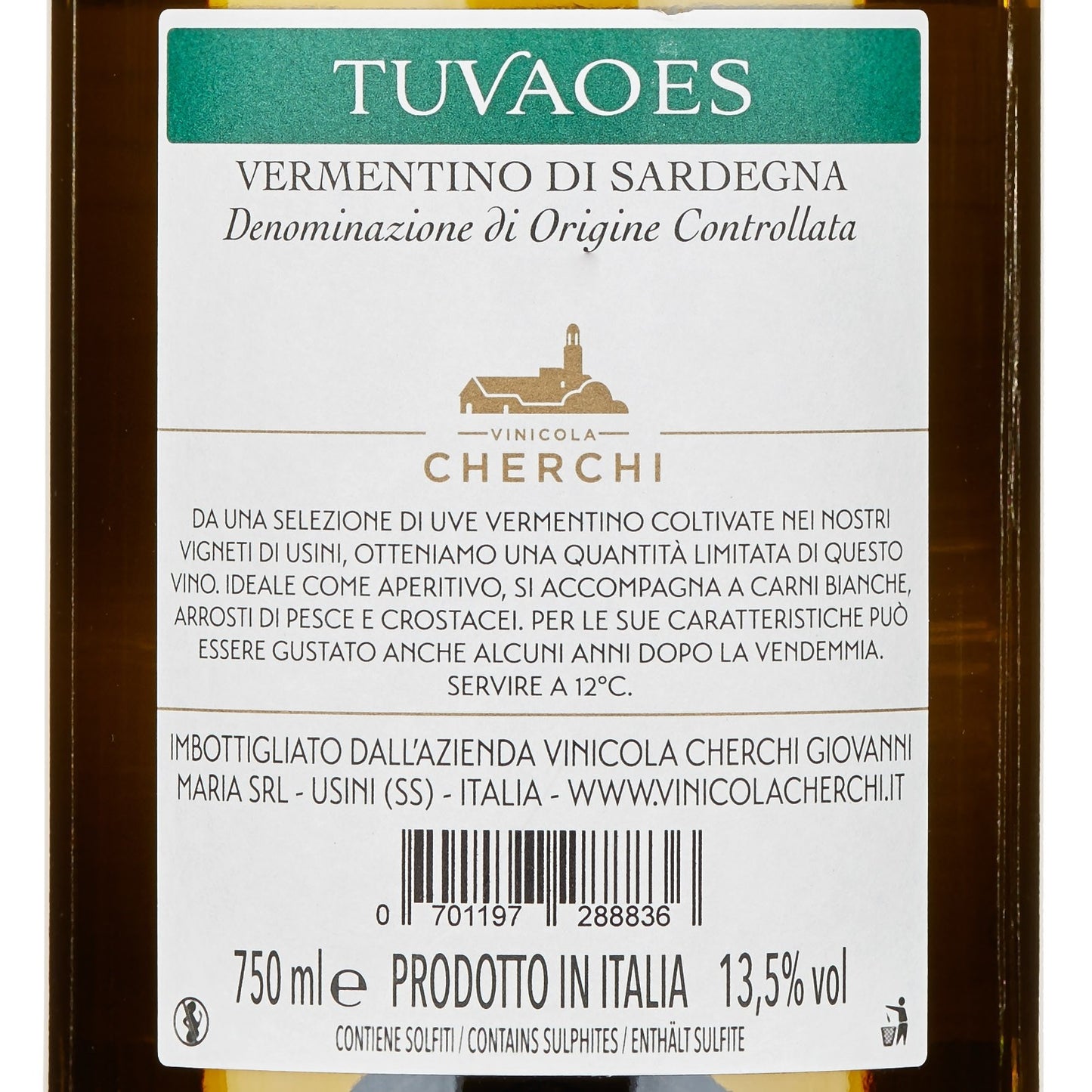 Uve vendemmiate manualmente, che una volta arrivate in cantina vengono sottoposte a pressatura soffice, per ottenere il mosto fiore, che viene avviato a fermentazione alcolica con l'inoculo di lieviti selezionati, in contenitori di acciaio inox alla temperatura controllata di circa 17° C. Tuvaoes matura sempre in contenitori di acciaio, e solo una piccola parte, il cinque per cento, in barriques di rovere francese.